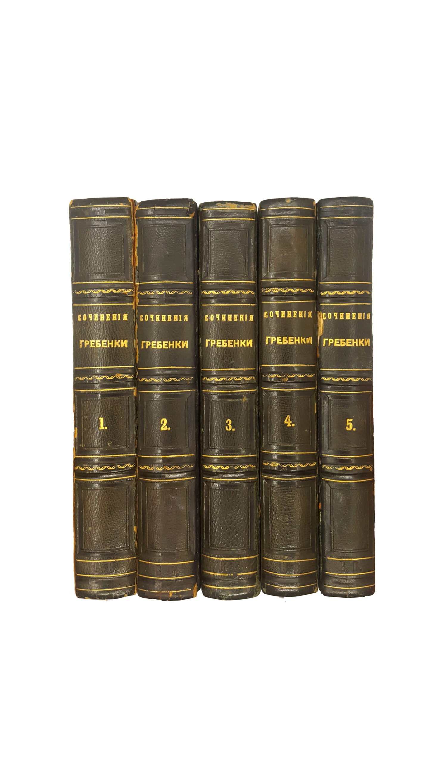 С гравированным портретом автора( в первом томе).Старинные владельческие переплеты,кожаные бинтовые корешки(присутствуют небольшие потёртости). Т-1,LXII,стр.476,Т-2 стр.509,Т-3 стр.492, Т-4 стр.495, Т-5 стр.436 + I-IV,разм . стр . 18.4 х 11.4 см.